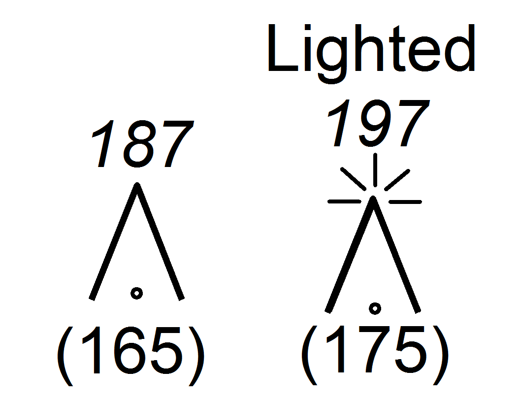 | Group obstacles Note: Numerals in italics indicate elevation of top of obstacle above sea level. Upright numerals in parentheses indicate height above specified datum. | ![]() |