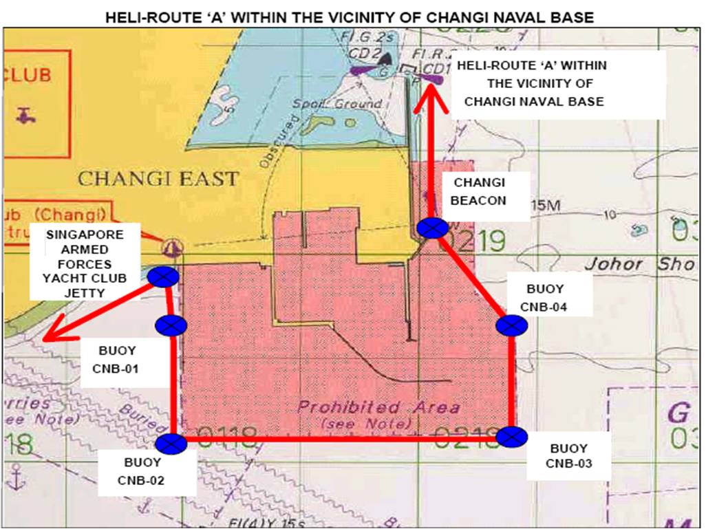 1.5.1 The over-land transit route established to facilitate helicopter movements across the Singapore Island is as follows: