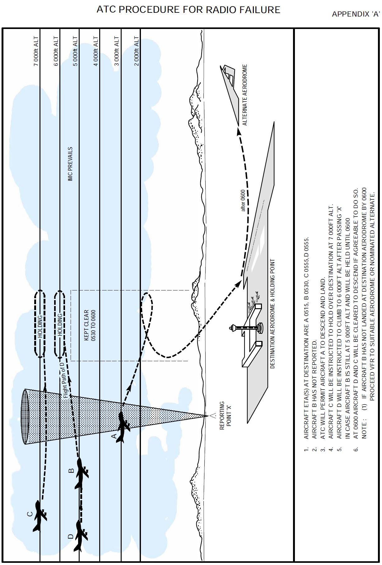 1.6.2 If total radio communication failure occurs in IMC, ATC action is based on the assumption that the aircraft will continue to its destination and if unable to land, will proceed to its nominated alternate. Separation standards will be increased and airspace reserved accordingly (see Appendices ‘A’ and ‘B’).